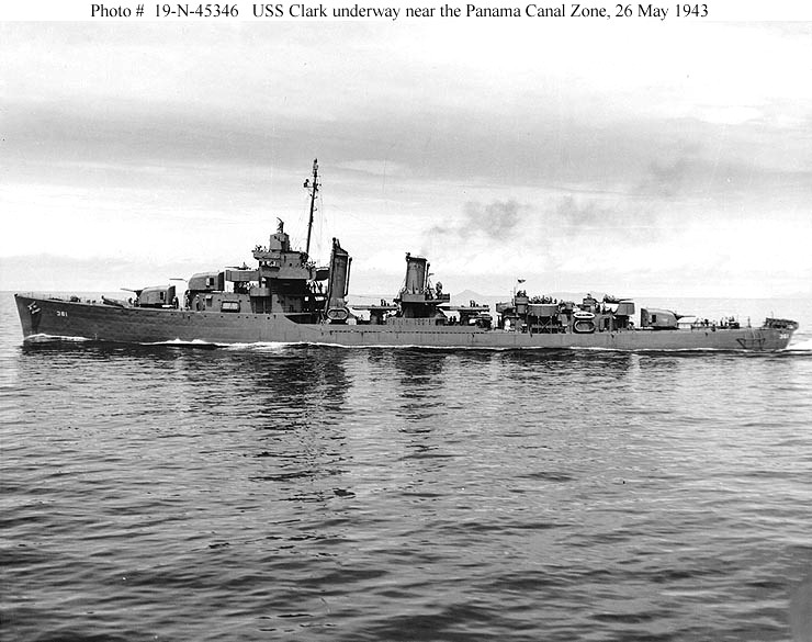 | 111k | USS Clark (DD-361) Underway near the Panama Canal Zone, 26 May 1943. Photograph from the Bureau of Ships Collection in the U.S. National Archives. | Fred Weiss | |