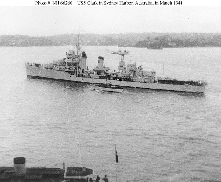 | 106k | Photo #: NH 66260. USS Clark (DD-361) in Sydney Harbor, New South Wales, Australia, in March 1941 U.S. Naval Historical Center Photograph. | Tony Cowart/Robert Hurst | |