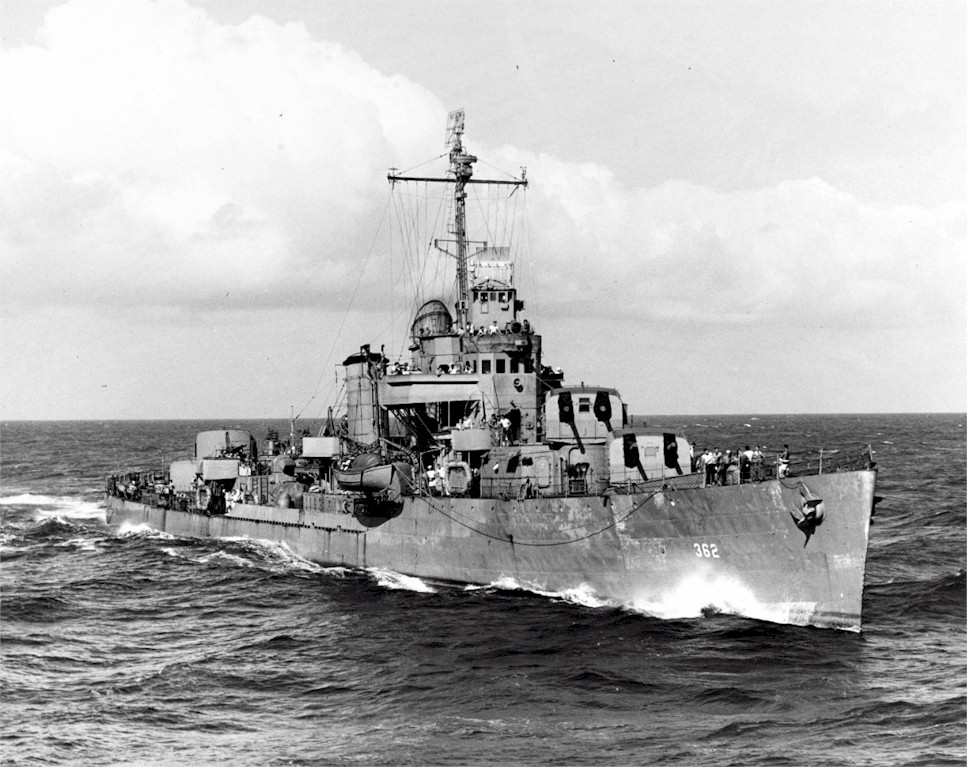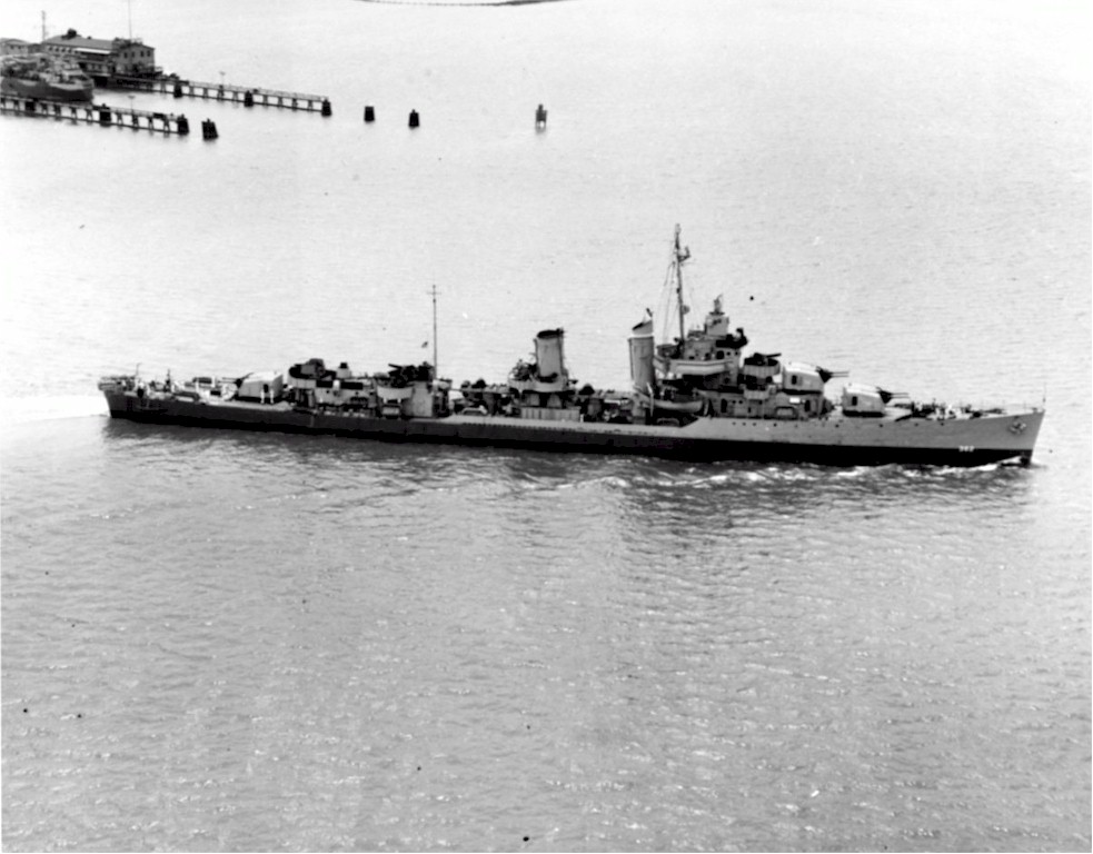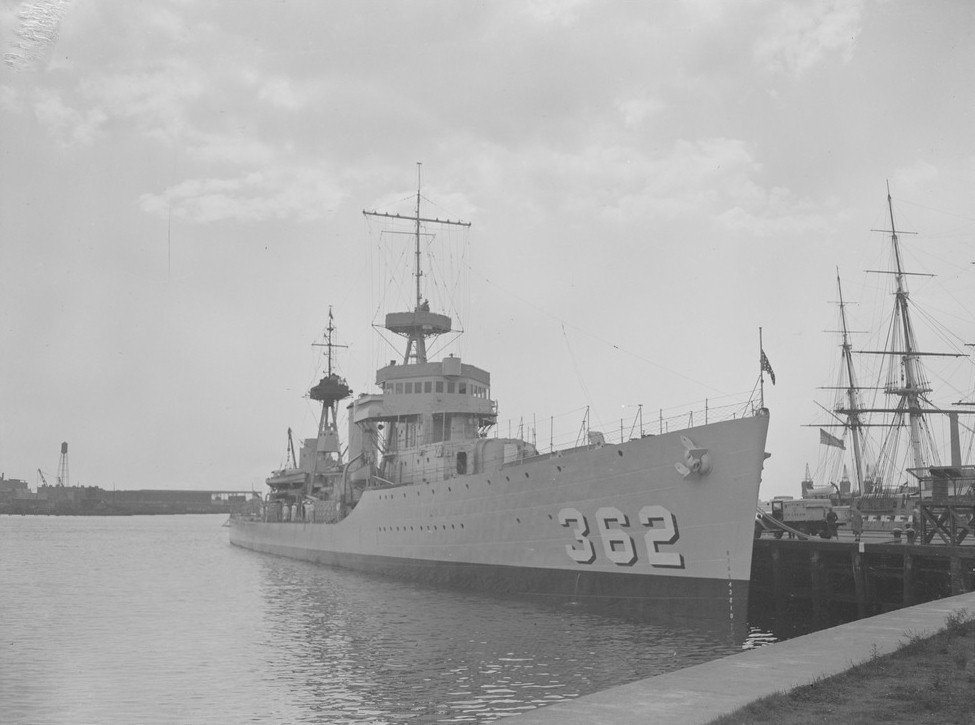| 140k | Aerial view of USS Moffett (DD-362) in Hampton Roads, Virginia, 13 June 1944. Source: United States National Archives, Photo No. 80-G-236743. | Mike Green |