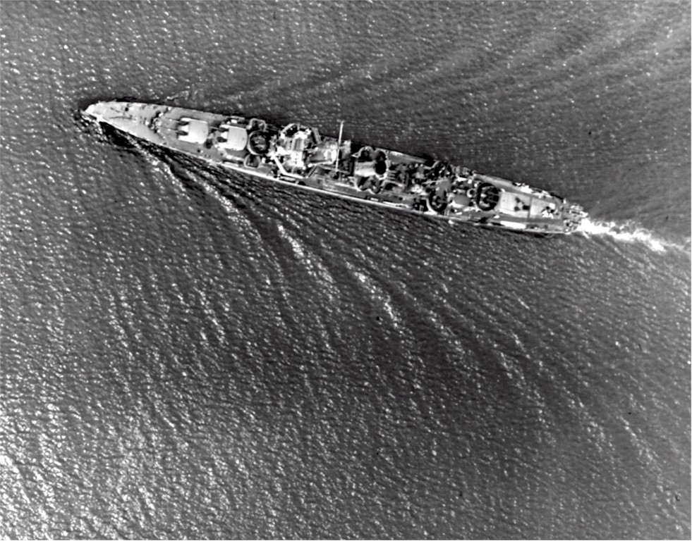 | 230k | Overhead view of USS Moffett (DD-362) in Hampton Roads, Virginia, 13 June 1944. Source: United States National Archives, Photo No. 80-G-236748. | Mike Green |