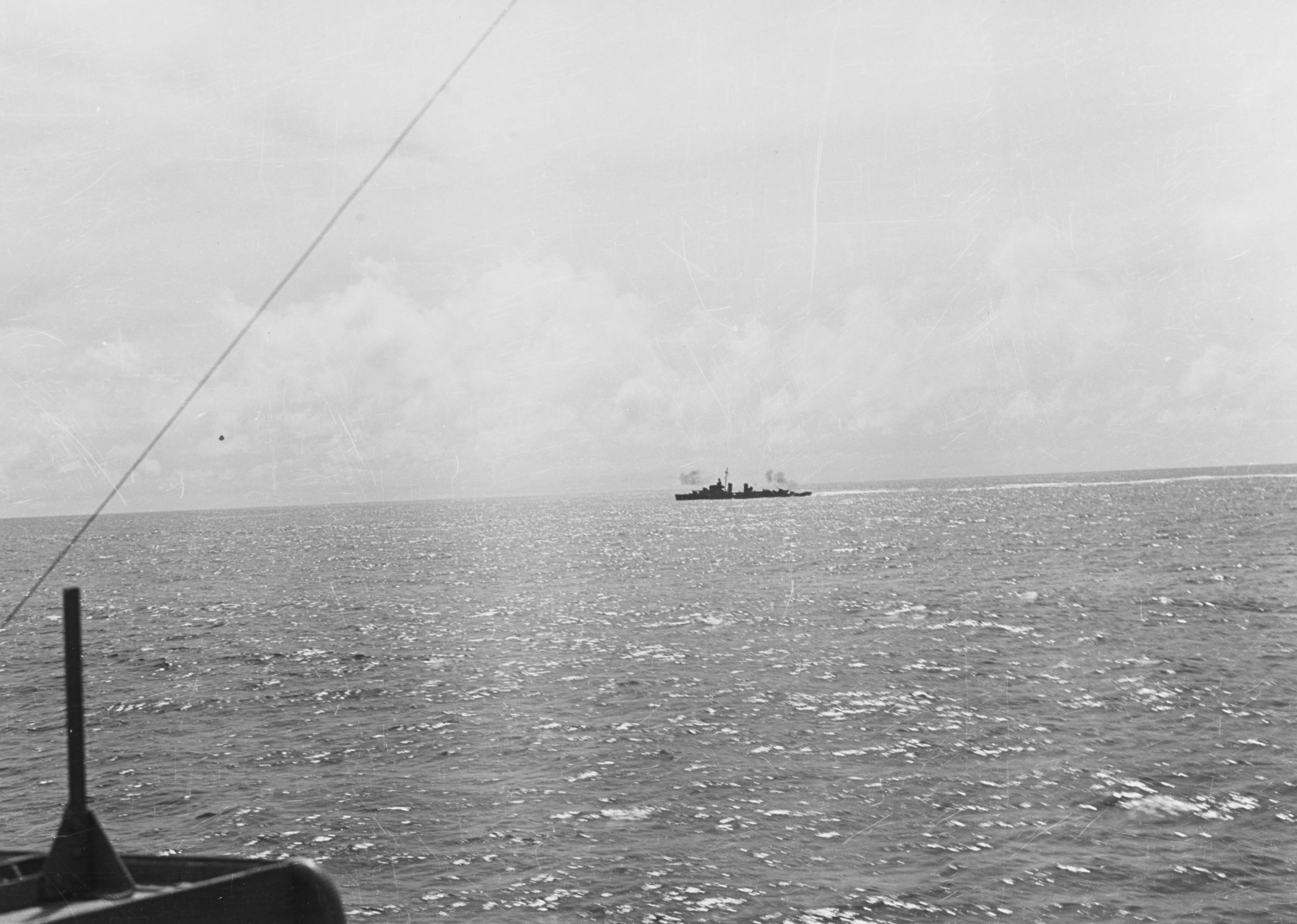 | 281k | At sea, 9 May 1945. On this date, Downes was patrolling the Truk Air-Sea Rescue Station at 10-30 North, 148-25 East. National Archives photo 80-G-350668 | Fred Weiss |