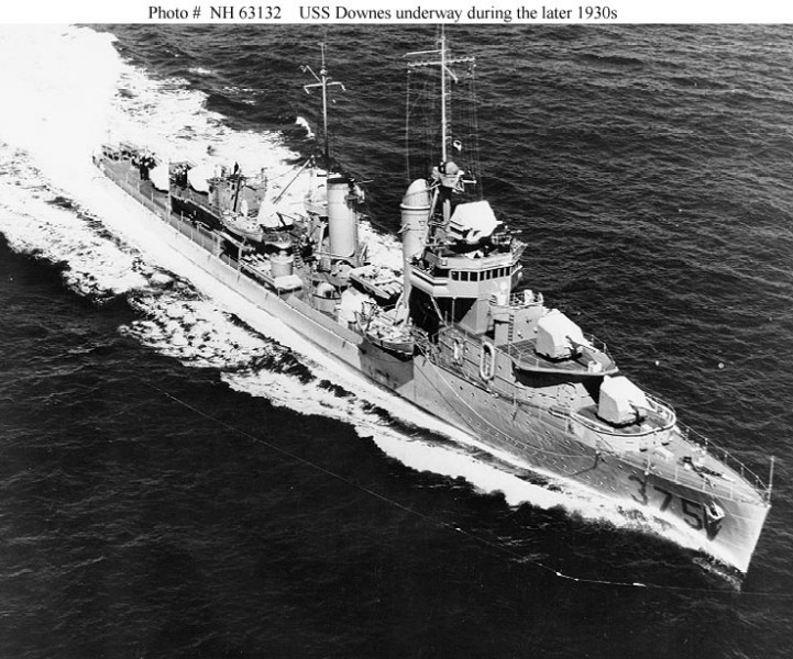 | 139k | USS Downes (DD-375) underway during the late 1930s. She is wearing a non-standard hull number style on her bow. Naval History & Heritage Command photo NH 63132 | Robert Hurst |