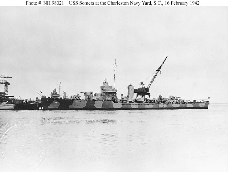 | 62k | USS Somers (DD-381) At the Charleston Navy Yard, South Carolina, 16 February 1942. She is wearing Measure 12 (modified) camouflage. Official U.S. Navy Photograph, from the collections of the Naval Historical Center. | Fred Weiss |
