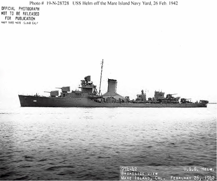 | 86k | USS Helm (DD-388) at Noumea, New Caledonia, on 6 April 1942. Photographed by USS Tangier (AV-8). Official U.S. Navy Photograph, now in the collections of the National Archives. | Joe Radigan |