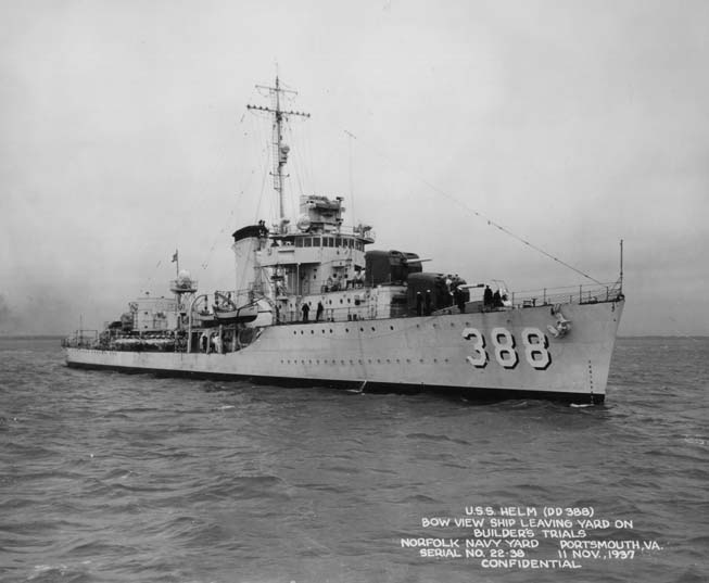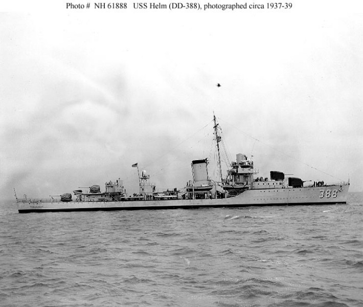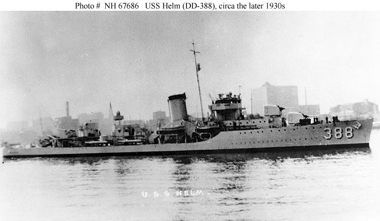 | 77k | USS Helm (DD-388) photographed circa 1937-1939. Note the dark paint on her forward 5"/38 gun mounts (USN Photo No NH 61888). | Robert Hurst |