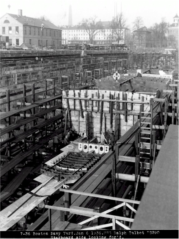 | 136k | USS Ralph Talbot (DD-390) under construction at the Boston Navy Yard, Mass., 6 January 1936. Source: United States National Archives, Photo No. 19-N-19263. | Mike Green | |