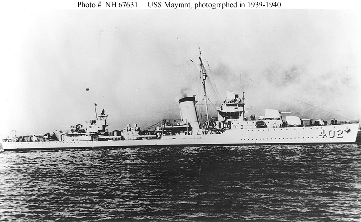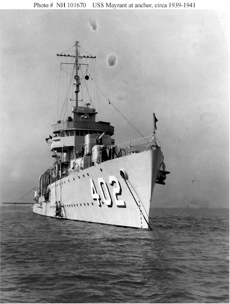 | 35k | Photo #: NH 67631, USS Mayrant (DD-402) photographed in 1939-1940. Courtesy of Donald M. McPherson, 1969. U.S. Naval Historical Center Photograph. | Tony Cowart |