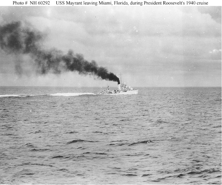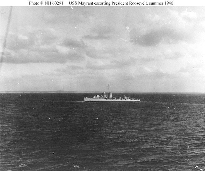 | 93k | Photo #: NH 60291, USS Mayrant (DD-402) escorting President Franklin D. Roosevelt during his summer 1940 inspection of East Coast defenses. U.S. Naval Historical Center Photograph. | Tony Cowart |