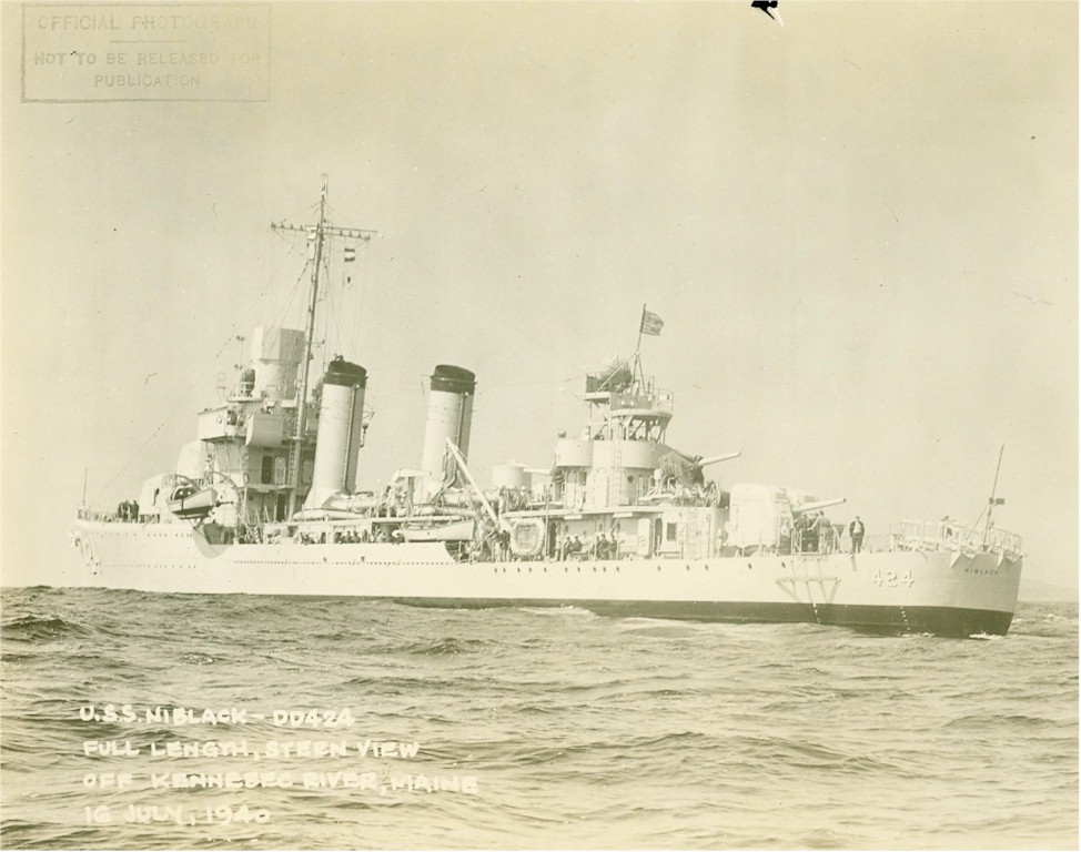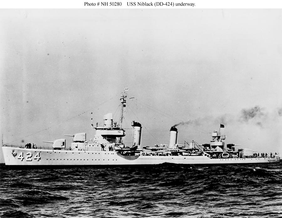 | 132k | USS Niblack (DD-424), View taken during builder's trials, circa Summer 1940. Note the Bath Iron Works flag flying at the foremast peak. Official U.S. Navy Photograph, from the collections of the Naval History and Heritage Command. Photo #: NH 50280. | Captain Jerry Mason USN/Ed Zajkowski/Robert Hurst | |