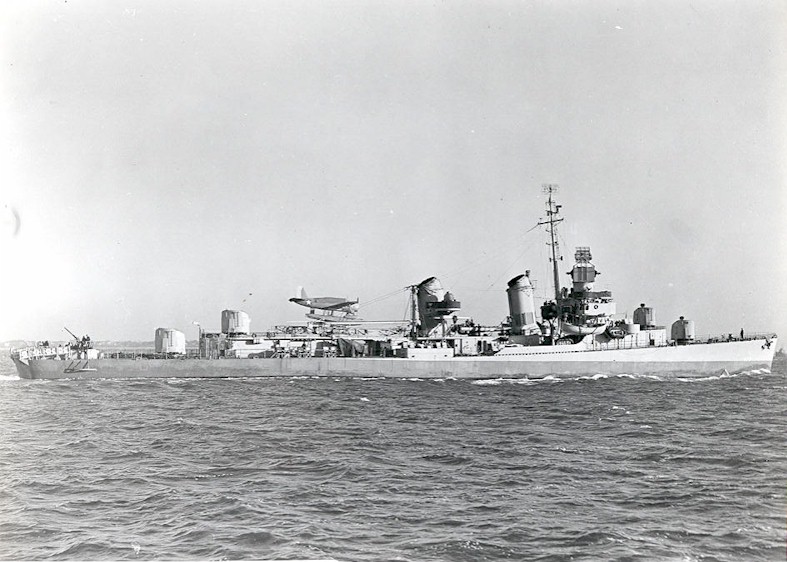 | 114k | 'Fletcher' class destroyer USS Pringle (DD-477) underway sometime in December 1942, location unknown. Note that she is fitted with a catapult, which replaced the after torpedo tubes and No.3 gun turret. Note also that the forward turrets have their top hatches open. | John N. Egeland, Jr. |