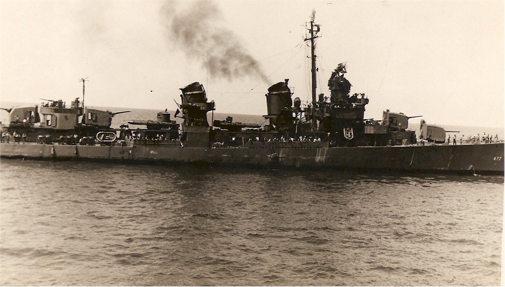 | 149k | USS Pringle (DD-477) in Purvis Bay, Florida Island, Solomons, in August 1943. Photographed from USS Nicholas (DD-449). Source: United States National Archives, Photo No. 80-G-56826. | Mike Green |