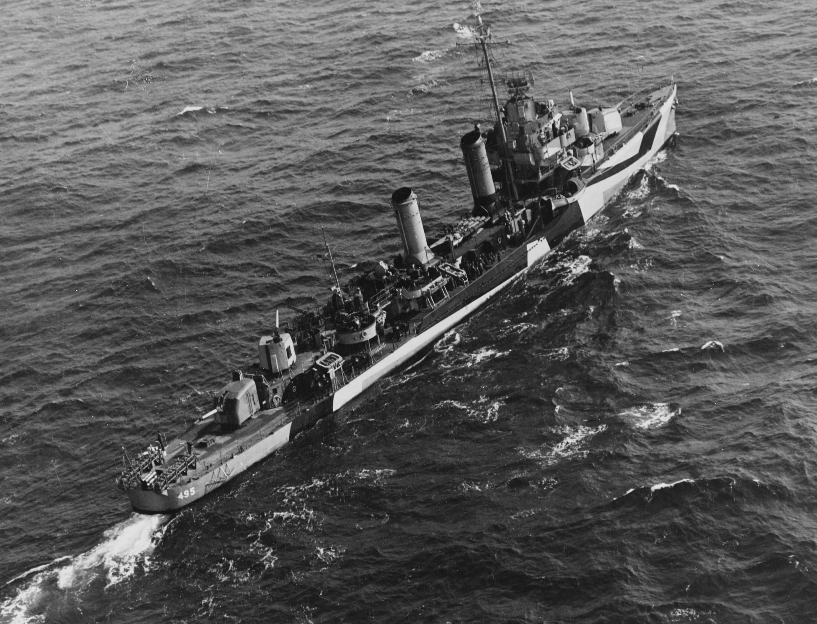 | 108k | USS Endicott (DD-495) in Naples Harbour, Italy, August 1944, prior to the Invasion of Southern France. Courtesy of Rear-Admiral John D. Bulkeley, USN. Naval History & Heritage Command photo NH 54381. | Robert Hurst |