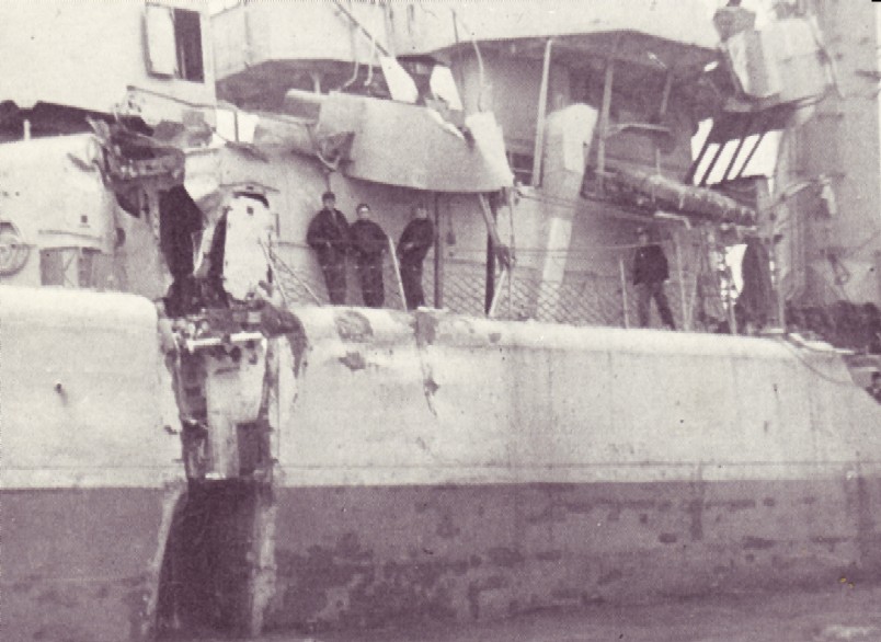 | 106k | Endicott was in collision with the American Export Line freighter Exhibitor off St. Govans Lightship, Wales at 0417, 26 May 1944. Endicott proceeded to Milford Haven to assess damage. She then entered the Lady Windsor docks at Barry, Wales,