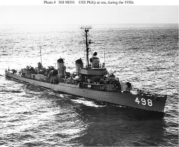 205k | USS Philip (DDE-498) at sea during the 1950s This photograph was received by the Naval Photographic Center in December 1959. Official U.S. Navy Photograph, from the collections of the Naval Historical Center. | Don Gardner | |