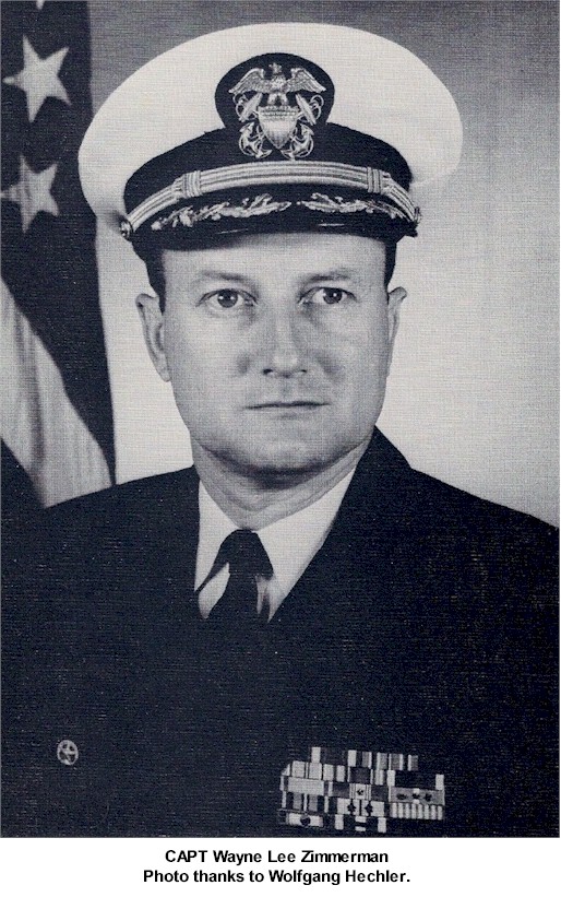 CDR Thomas Cameron Ragan Nov 21 1942 - Jul 24 1943 (Later VADM) CDR William Heald Groverman Jr. Jul 24 1943 - Jan 23 1944 (Later RADM) CDR James Boyd Rutter Jr. Jan 23 1944 - Aug 4 1945 CDR Eugene Darrel Lamiman Aug 4 1945 - Feb 1 1946 (Decommissioned Feb 1 1946 - Jun 30 1950) CDR Francis Willard Larson Jun 30 1950 - Feb 21 1952 CDR Demetrius John Vellis Feb 21 1952 - May 16 1953 CDR George Waugh Albin Jr. May 16 1953 - Jul 1955 CDR John Spencer Neil Jul 1955 - Aug 1957 CDR Alden Webster Whitney Aug 1957 - Jul 1959 CDR Jack Lions Wohler Jul 1959 - Nov 16 1960 CDR Edward Lull Cochrane Jr. Nov 16 1960 - Aug 1962 CDR Delbert David Grantham Aug 1962 - Mar 1964 CDR William Prather Ferguson Mar 1964 - Nov 1965 CAPT Wayne Lee Zimmerman Nov 1965 - Dec 1966 CDR Henry Francis Boyle Jr. Dec 1966 - Apr 1967 CDR John Farwell Danis Apr 1967 - Sep 30 1968