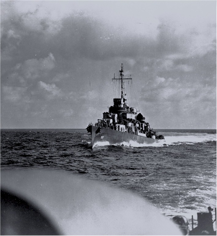 | 173k | USS Conway (DD-507) underway in the South Pacific, while escorting a convoy, in August 1943. Photographed from USS Nicholas (DD-449). May have been taken during the Vella Lavella invasion. Official U.S. Navy Photograph, now in the collections of the National Archives. Photo #: 80-G-56813. | Robert Hurst |