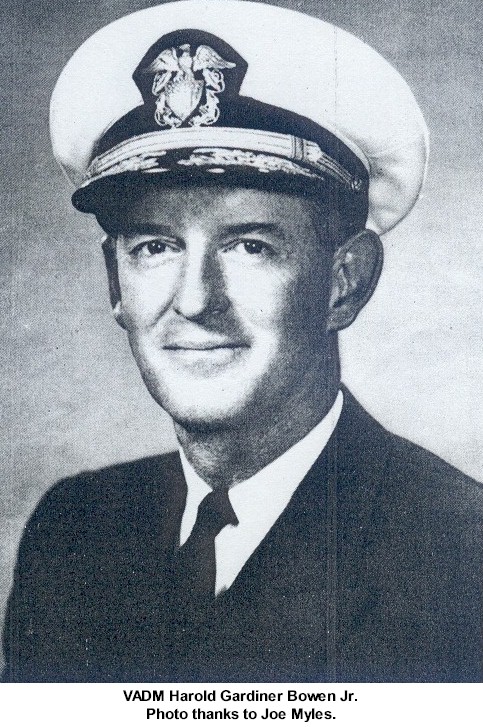| 102k | Photo #: NH 67963. Destroyer Squadron Twenty-Eight Commanding officers of the squadron's ships display their Anti-Submarine Warfare "A" awards in a ceremony held on board one of the DesRon28 destroyers, circa the late 1950s or early 1960s. Flanking them are Vice Admiral Edmund B. Taylor, Commander Anti-Submarine Defense Force, Atlantic Fleet (at left) and Rear Admiral Frederick V.H. Hilles, Commander Destroyer Flotilla 4 (at right). The DesRon28 insignia is in the foreground. Those holding the "A" awards are (from left to right): Commander George R. Bryan, Commanding Officer, USS Conway (DDE-507); Commander David A. Johnson, Commanding Officer, USS Beale (DDE-471); Commander Frank C. Dunham, Commanding Officer, USS Cony (DDE-508); Commander Ralph F. Monger, Commanding Officer, USS Murray (DDE-576); Commander James L. Rothermel, Commanding Officer, USS Waller (DDE-466); and Captain Arthur G. Esch, Commanding Destroyer Division 282, who accepted the award on behalf of USS Eaton (DDE-510), three time winner of the "A" award. Photograph received from USS Waller, 1969. U.S. Naval Historical Center Photograph. | Bill Gonyo |