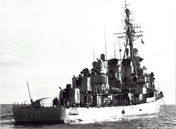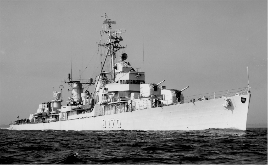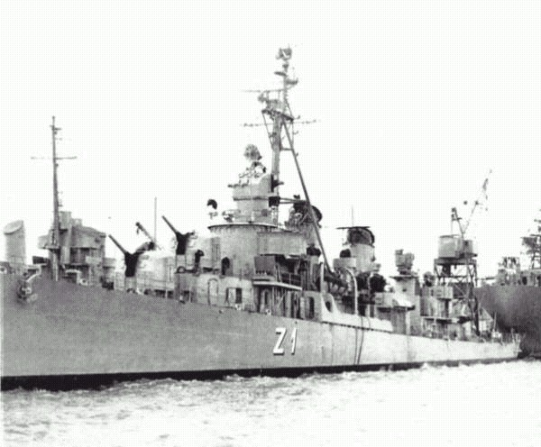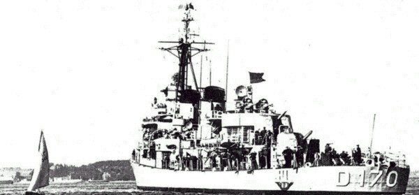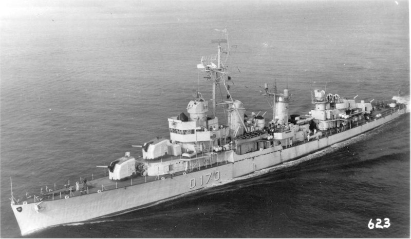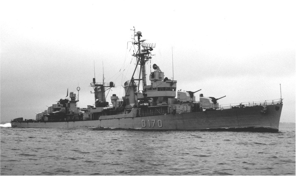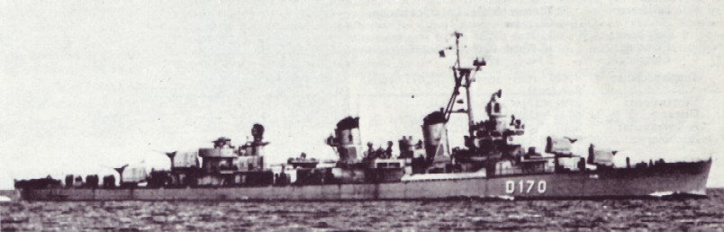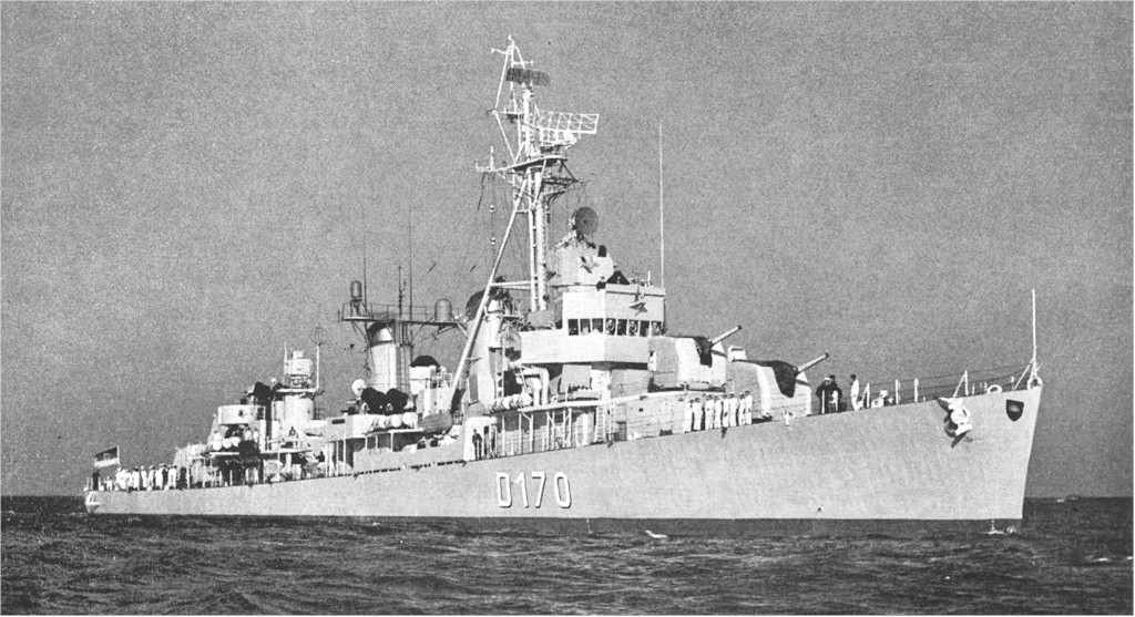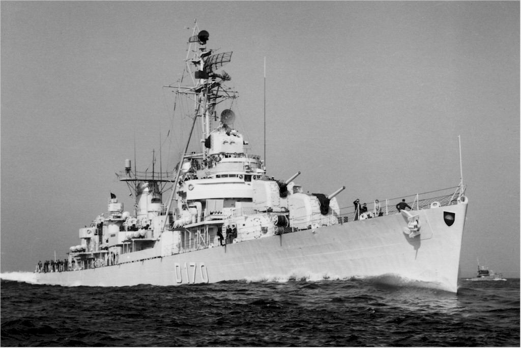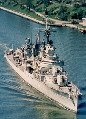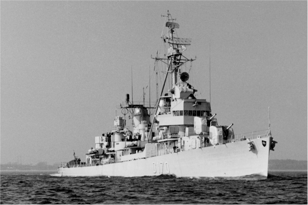 | 124k | Destroyer FGS Z-1 (D 170, ex-USS Anthony) at anchor, in 1971, location unknown. West German Navy, Official. | Robert Hurst |