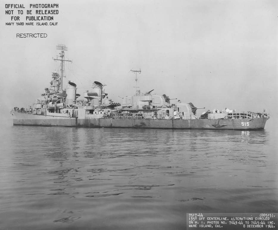 67k | Photo #: NH 102866, USS Anthony (DD-515) off the Mare Island Navy Yard, California, 8 December 1944. Official U.S. Navy Photograph, from the collections of the Naval Historical Center. | Tony Cowart |