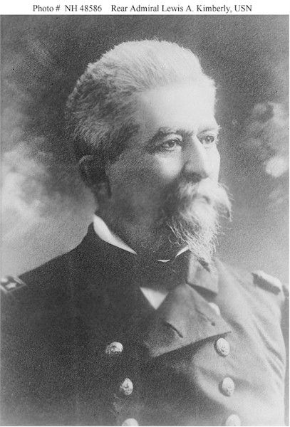 67k | Lewis Ashfield Kimberly was born 22 April 1838, in Troy, N.J., and was appointed a Midshipman 8 December 1946. From 1847 to 1860 he was in the African, Pacific, and East India Squadrons. During the Civil War he served on Potomac in the West Gulf Blockading Squadron, and took part in the Mississippi River operations at Port Hudson, Grand Gulf, and Vicksburg. He was Executive Officer of Hartford, in the Battle of Mobile Bay, and was warmly commended for gallant and efficient service.
