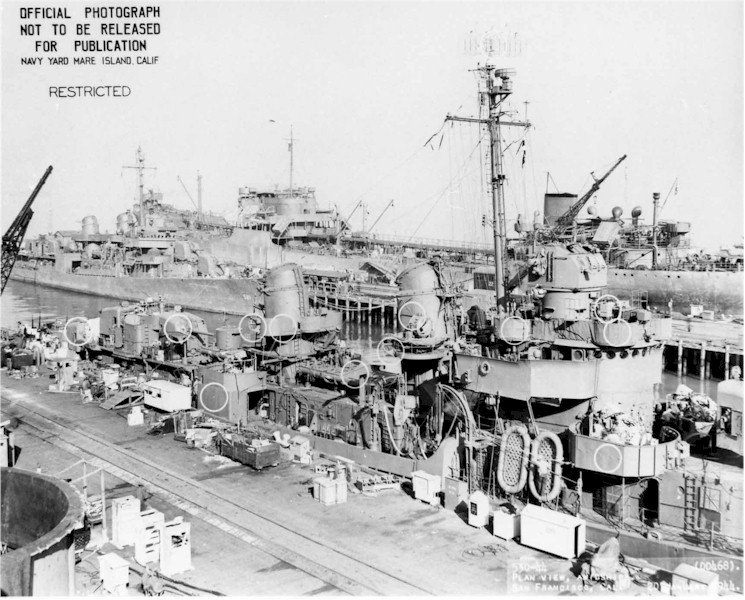 | 108k | Forward plan view of USS Kimberly (DD-521) outboard of USS Young (DD-580) at Mare Island on 26 June 1945. | Darryl Baker |