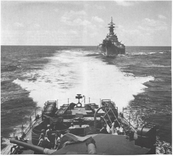 | 91k | USS Missouri as seen across the fantail of the USS Kimberly (DD-521) while enroute ot the Panama Canal, 11 October 1945. | Edward H. Cleary |