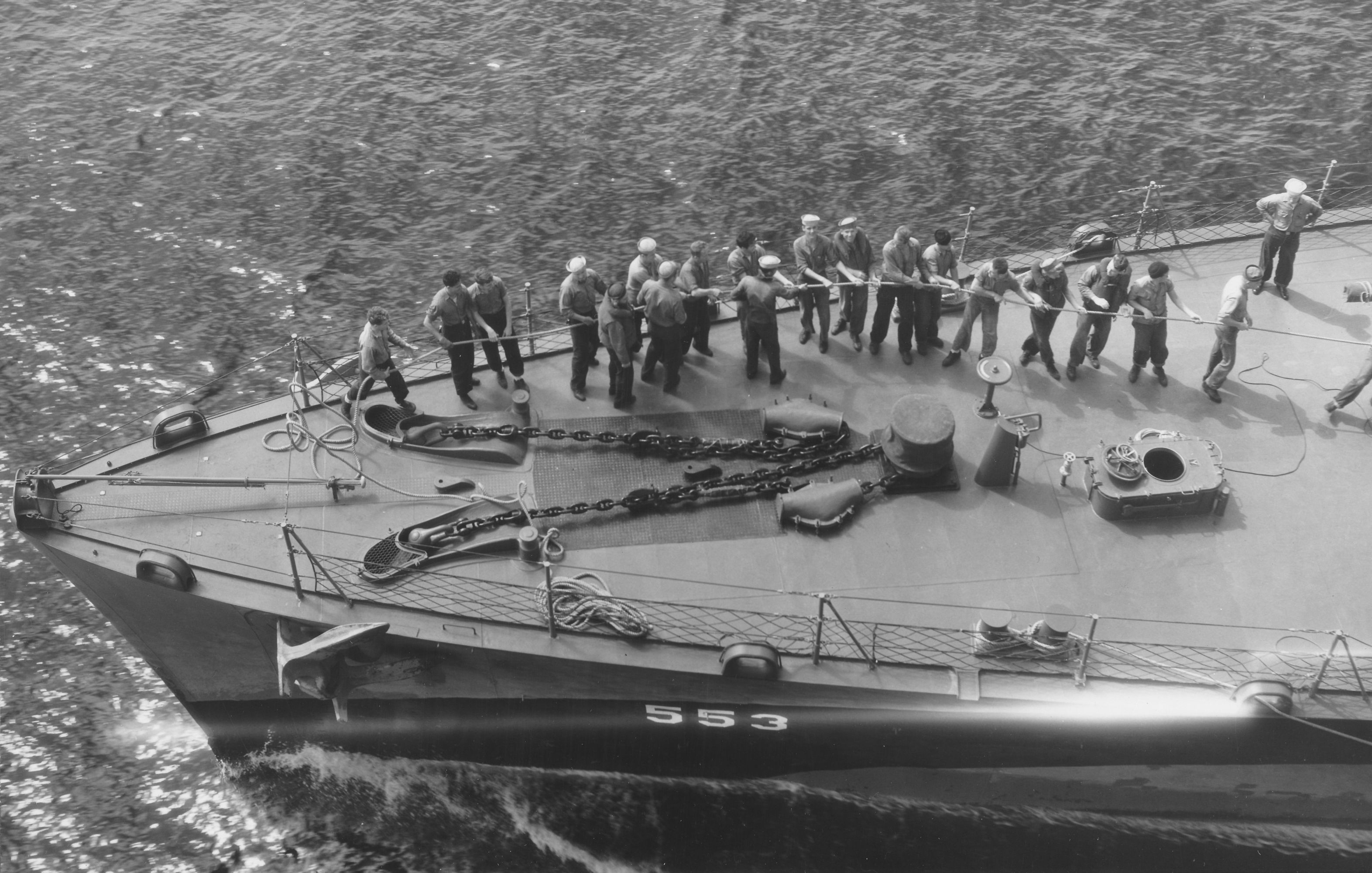 361k | Another view of John D. Henley underway in Mobile Bay, en route to fitting out, 11 February 1944. National Archives photo from 19LCM/dd553 folder |