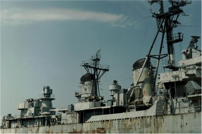 | 224k | The Greek Salamis Naval Base on 31 August 1979. Visible among other ships are the six Greek Fletcher-class destroyers: Kimon (ex-USS Ringgold (DD-500), Nearchos (ex-USS Wadsworth (DD-516), Sfendoni (ex-USS Aulick (DD-569), Aspis (ex-USS Conner (DD-582), Lonchi (ex-USS Hall (DD-583), and Velos (ex-USS Charrette (DD-581). Also visible are the landing ships Nafkratoussa (ex-USS Fort Mandan (LSD-21), Oinoussai (ex-USS Terrell County (LST-1157), and Kos (ex-USS Whitfield County (LST-1169). Photo by PHC C. Pedrick, USN. U.S. DefenseImagery photo VIRIN: photo VIRIN: DN-SC-82-00328. | Robert Hurst |