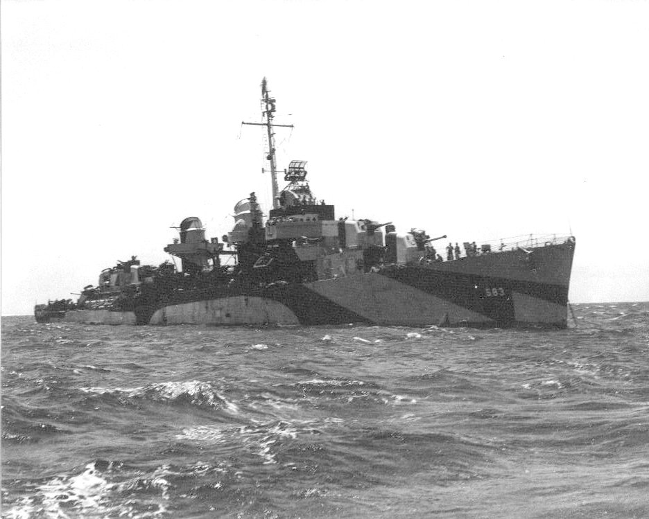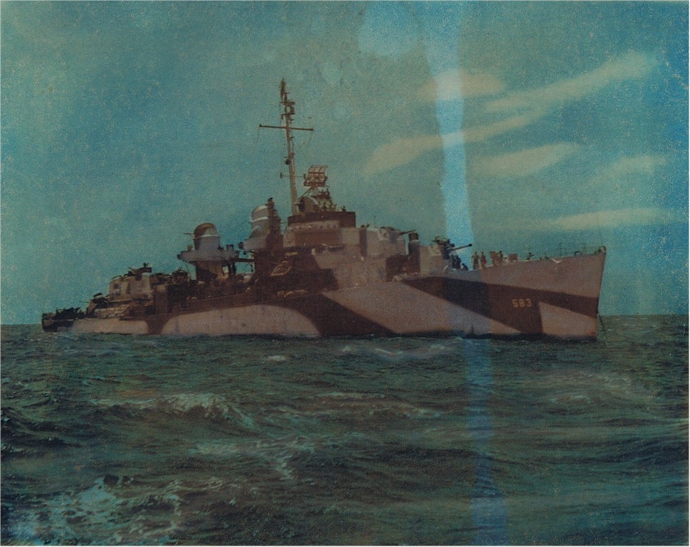 104k | Undated, location unknown. The ship is painted in camouflage Measure 32, Design 1d. | John M. Minicucci, Jr GM1c |