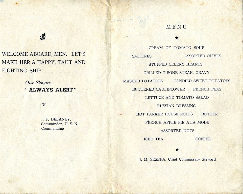 196k | The Commissioning dinner menu from July 7 1943. | Vernon L Hargrave |