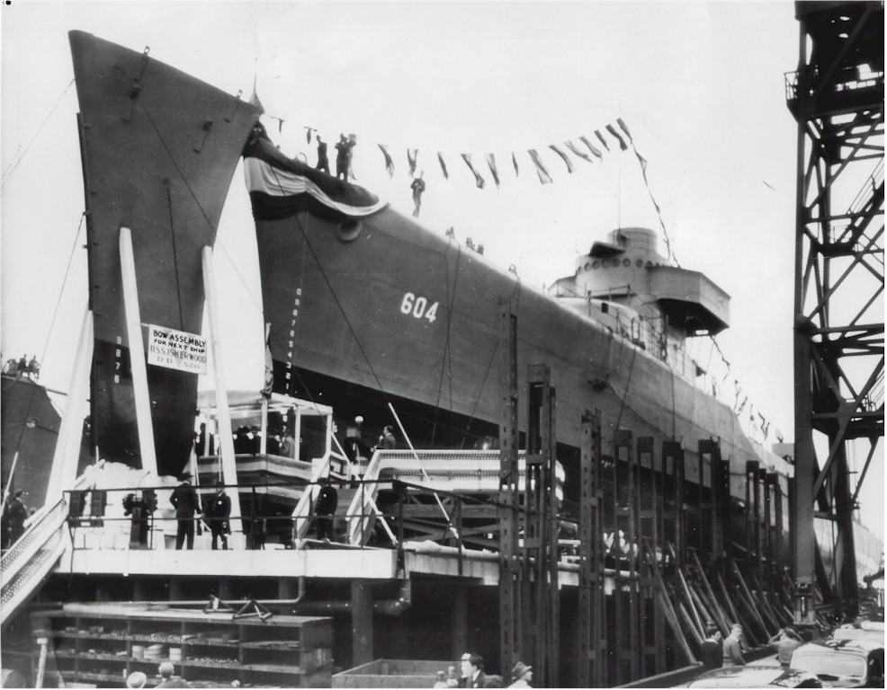 | 160k | Parker (DD-604) awaiting her launch at Bethlehem Steel, Staten Island, 12 May 1942. Note the bow assembly of Isherwood (DD-520) awaiting its place on the ways. | Bill Gonyo | |