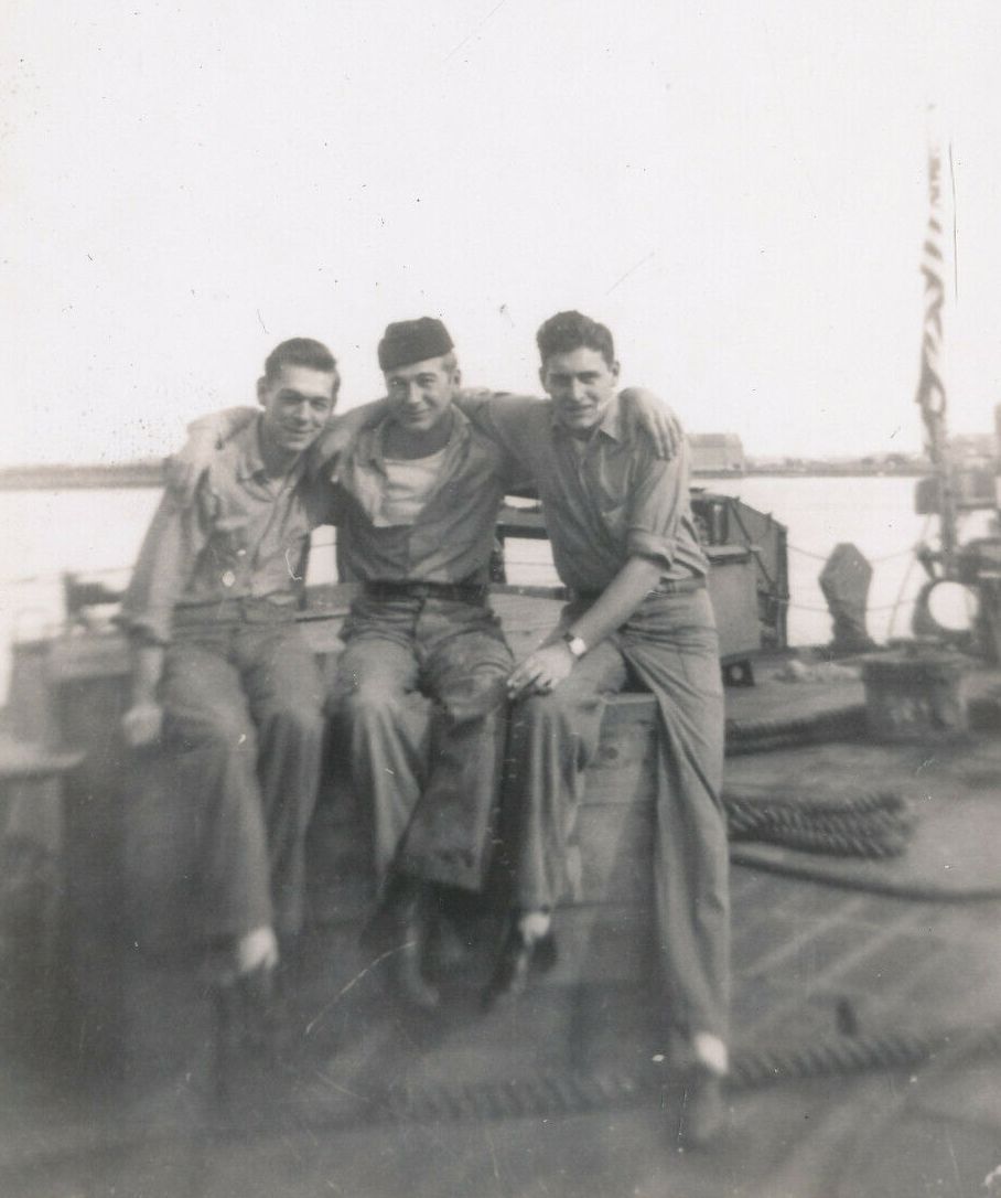 | 79k | Parker crewmen, probably at Charleston Navy Yard, January 1946. L-R: Y1c Ernest Kovach, Sea2c Stephen Ivan, and SK3c George H. Crofoot. | Dave Wright | |