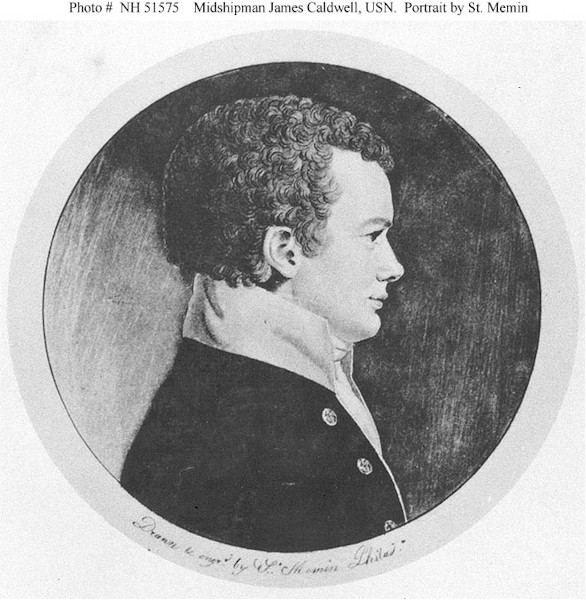 103k | Photo #: NH 51575. Midshipman James R. Caldwell, U.S. Navy, (1778-1804) engraved portrait by Charles Ste. Memin, 1799. U.S. Naval Historical Center Photograph. | Tony Cowart |