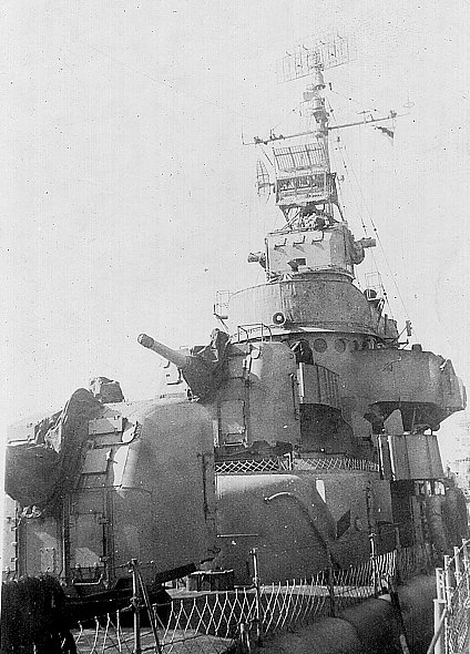 | 176k | USS Detroit (CL-8) at the Mare Island Navy Yard, California, 15 August 1942. Note her after 6"/53 guns and men lounging on the fantail. Circles mark recent alterations to the ship. Destroyers in the background include USS Preston (DD-379), at right, and USS Conyngham (DD-371), at left. On the far side of the pier from them are USS Caldwell (DD-605), in the far center distance beyond Preston's bow, and USS Walke (DD-416), at left beyond Conyngham. YOS-1 is in the far right distance. Photograph from the Bureau of Ships Collection in the U.S. National Archives. Photo #: 19-N-33050. | Robert Hurst |