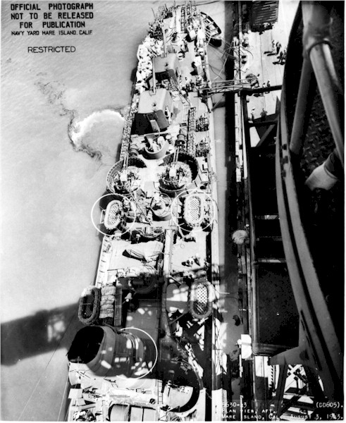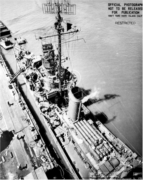 | 115k | Forward plan view of the USS Caldwell (DD 605) at Mare Island on 2 August 1943. | Darryl Baker |