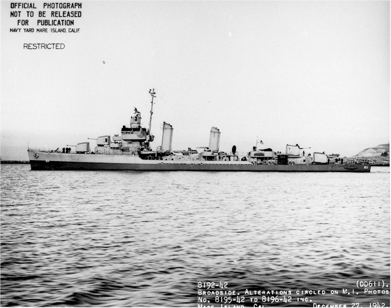 | 158k | USS Kalk (DD 611) off Mare Island on December 27, 1942. Photo from the collection of the Vallejo Naval and Historical Musuem. | Darryl Baker | |