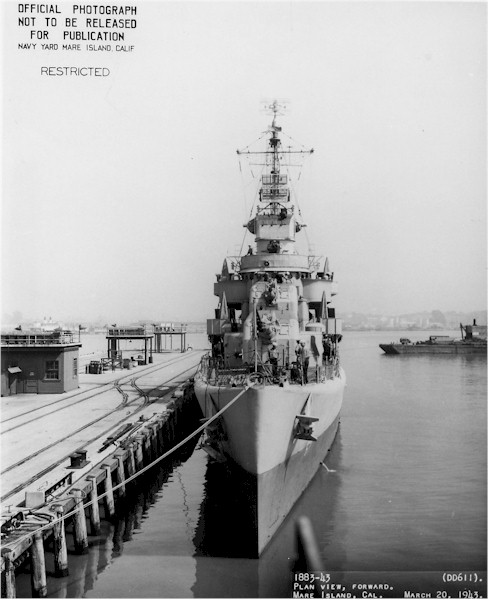 | 65k | Navy Photo 1883-3-43, forward plan view of USS Kalk (DD 611) at Mare Island on 20 March 43. She was under going repairs at the yard from 3 March to 25 March 1943. | Darryl Baker | |