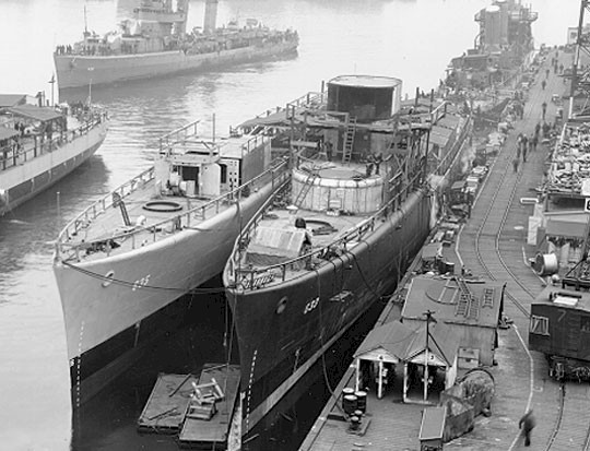 | 73k | USS Knight (DD-633) and USS Earle (DD-635) fitting out on February 1 1942. | Ron Reeves |