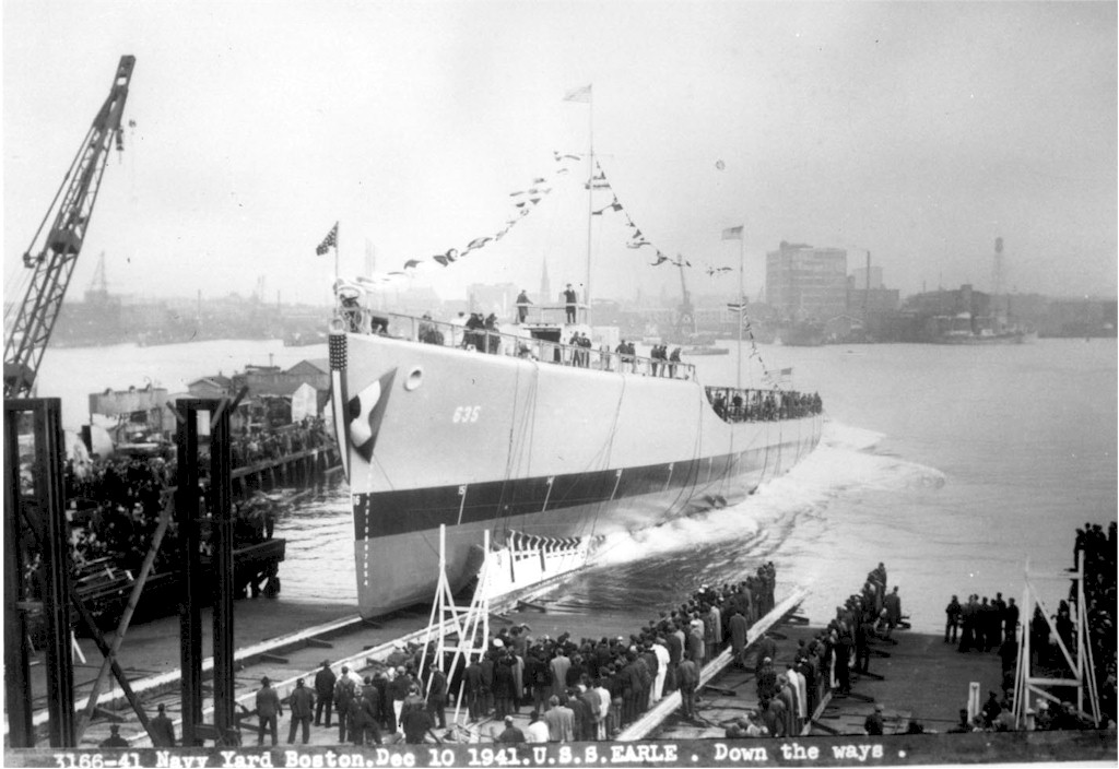| 151k | USS Earle (DD-635) slides down Shipways 2 of the Boston Navy Yard into Boston harbor on 10 December, 1941. (U.S. Navy photo NY2 3166-40, Boston National Historical Park Collection, NPS Cat. No. BOSTS-11011). | Stephen P. Carlson, Boston NHP, Charlestown Navy Yard |
