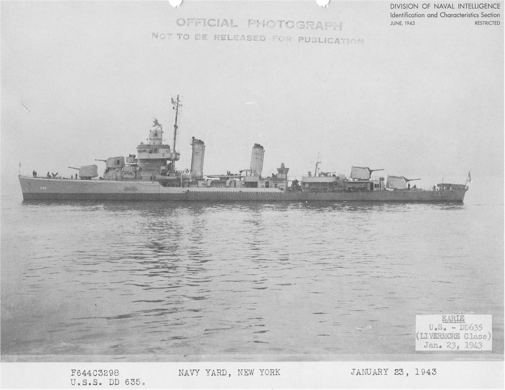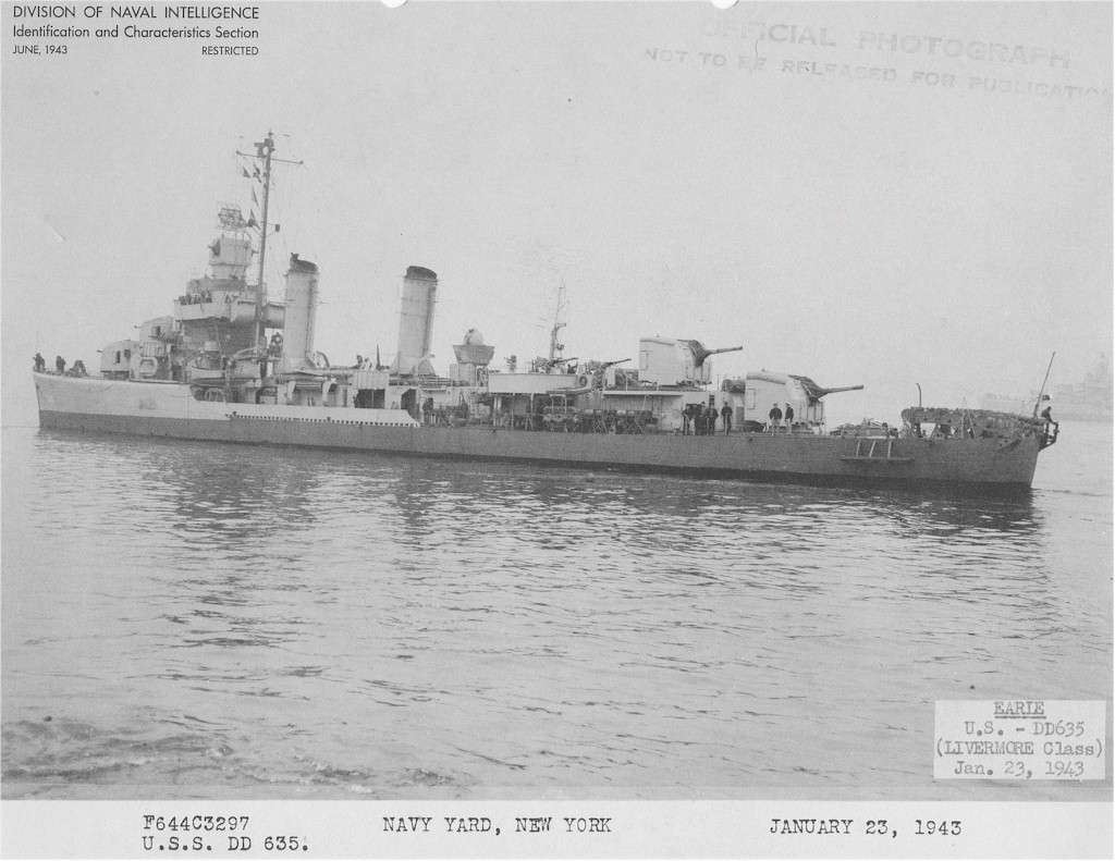 | 170k | USS Earle (DD-635), January 1943 at New York Navy Yard, USN/ONI photo. | David Buell |