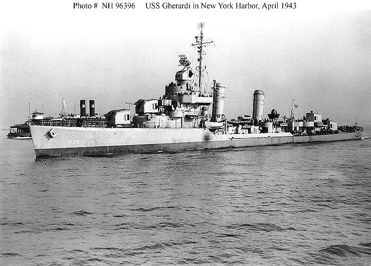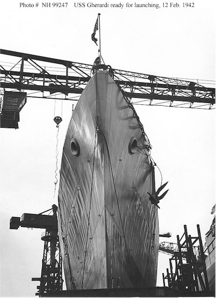 | 73k | Photo #: NH 99247 USS Gherardi (DD-637) ready for launching, at the Philadelphia Navy Yard, Pennsylvania, on 12 February 1942. Courtesy of the Naval Historical Foundation. Collection of Rear Admiral Adolphus E. Watson, USN, donated by Mrs. Alexander C. Liggett and Mrs. J.S. Taylor. Official U.S. Navy Photograph, from the collections of the Naval Historical Center. | Tony Cowart | |