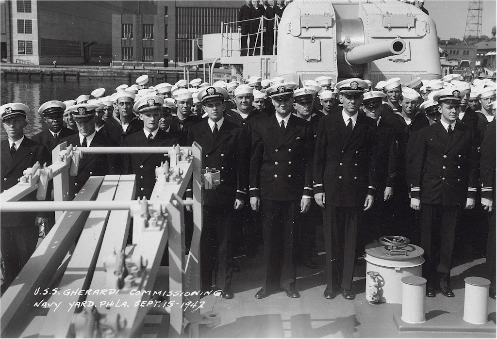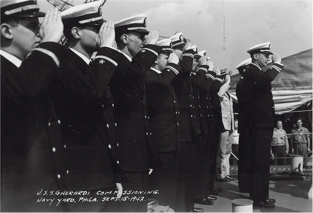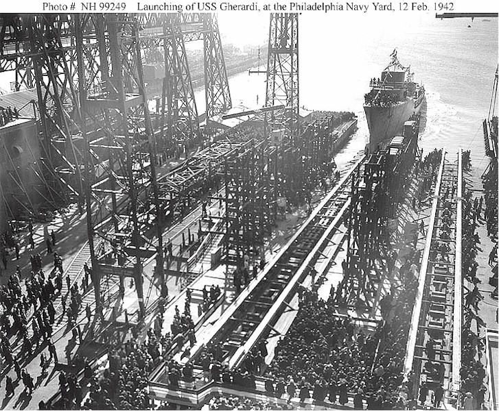 | 230k | USS Gherardi (DD-637) Launching, at the Philadelphia Navy Yard, Pennsylvania, 12 February 1942. Courtesy of the Naval Historical Foundation. Collection of Rear Admiral Adolphus E. Watson, USN, donated by Mrs. Alexander C. Liggett and Mrs. J.S. Taylor. Official U.S. Navy Photograph, from the collections of the Naval Historical Center. | Fred Weiss | |