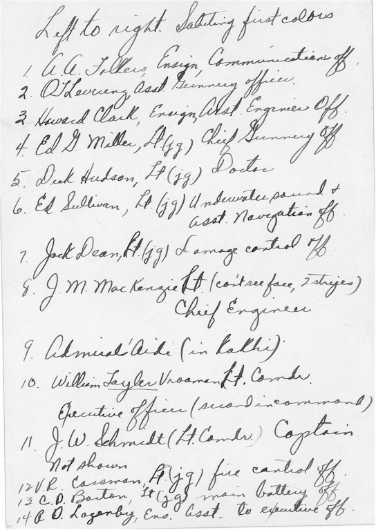 | 179k 126k | Another scene from the Commissioning Ceremony on September 15 1942 at Philadelphia Navy Yard along with a list of those present in the photo. | Mark Leverenz | |