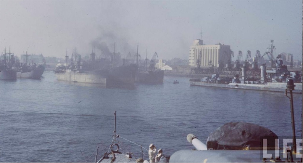 | 91k | USS Gherardi moored in the port of Casablanca March 18 1943, recently arrived with Convoy UGS5a. Photo from Life Magazine collection, photographer Dmitri Kessel, arriving in UGF6. For educational and non-commercial use. | John Chiquoine | |