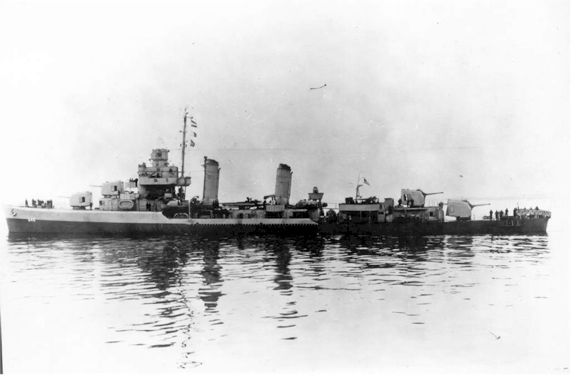 | 96k | Photo #: NH 103766, USS Tillman (DD-641), left, and USS Beatty (DD-640) right, on the building ways while being prepared for their dual launching ceremonies, at the Charleston Navy Yard, South Carolina, December 1941. The ships have not yet received a clean coat of paint. When launched on 20 December 1941, both had been painted in Camouflage Measure 12. Courtesy of Donald M. McPherson, 1975. U.S. Naval Historical Center Photograph. | Tony Cowart |