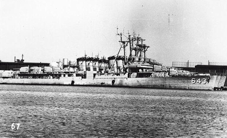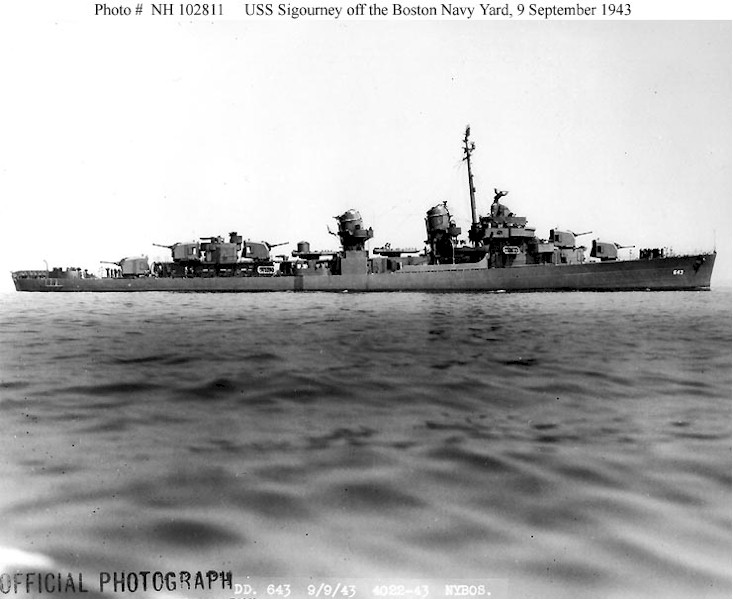 | 81k | Photo #: NH 102811, USS Sigourney (DD-643) off the Boston Navy Yard, Massachusetts, 9 September 1943.