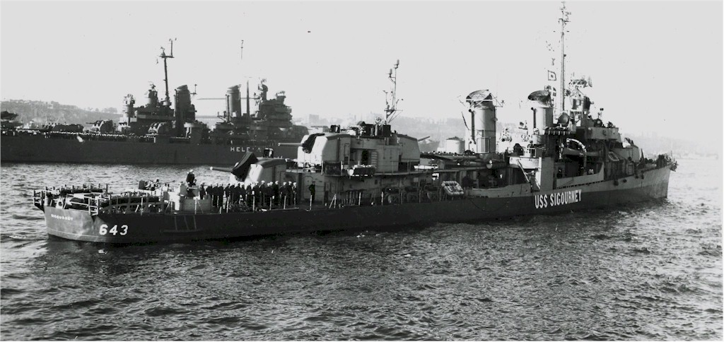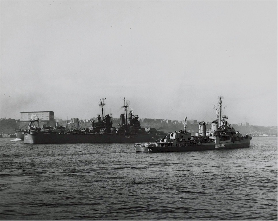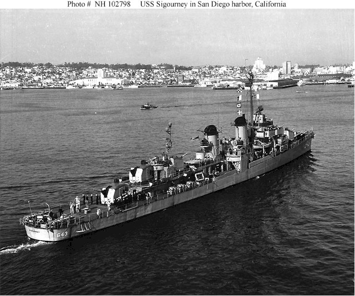 | 140k | Photo #: NH 102798, USS Sigourney (DD-643) underway in San Diego Harbor, California, probably in mid-1953. Official U.S. Navy Photograph, from the collections of the Naval Historical Center. | Tony Cowart |
