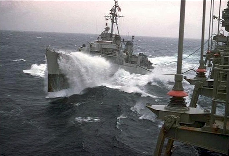 | 93k | Sigourney refueling in heavy weather from USS Franklin D. Roosevelt (CVA-42)while deployed in the Mediterranean Sea, 01 January 1957. Photo by PR2 Ed Winslow. | Richard Miller BMCS USNR RET. Robert Hurst |