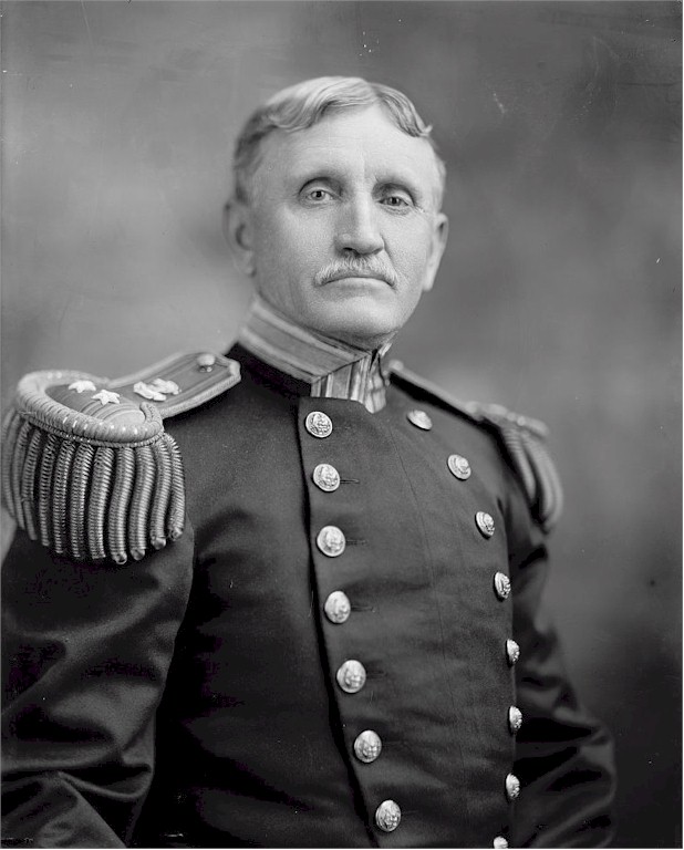 | 90k 171k | Born in 1850 in Spring Hill, Tenn., William B. Caperton graduated from the Naval Academy in 1875. He held major posts ashore and afloat, chief of which were commanding the naval forces intervening in Haiti (1915-16) and Santo Domingo (1916), and Commander-in-Chief, Pacific Fleet, from 28 July 1916 to 30 April 1919. He served actively until 12 November 1921, and died in Newport, R.I., 12 December 1941. First photo digital ID: hec 17342, Library of Congress Prints and Photographs Division. Second photo courtesy of the Arlington National Cemetery. | Bill Gonyo | |