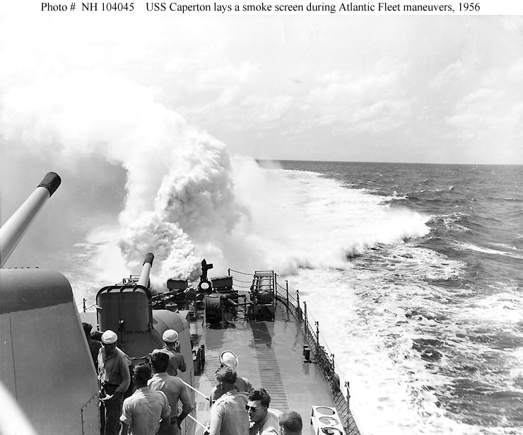| 102k | Laying a smoke screen during Atlantic Fleet maneuvers in 1956. | Gust Meraklis | |